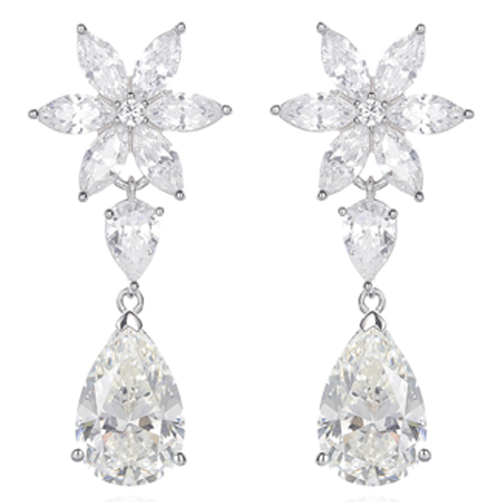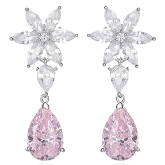 Pear Shape Diamond Pink And Marquise White Cubic Zircon Rhodium Silver Earring