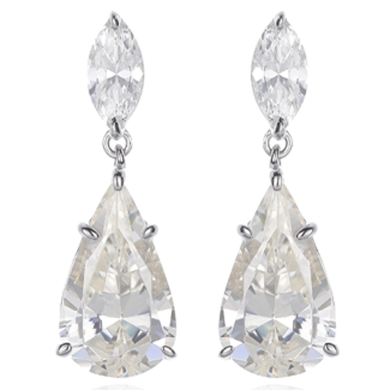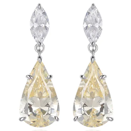 Pear Shape Diamond Yellow And Marquise White Cubic Zircon Rhodium Silver Earring