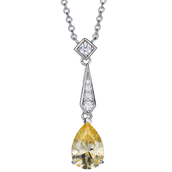 Pear Shape Diamond Yellow And Round White Cubic Zircon Rhodium Silver Necklace