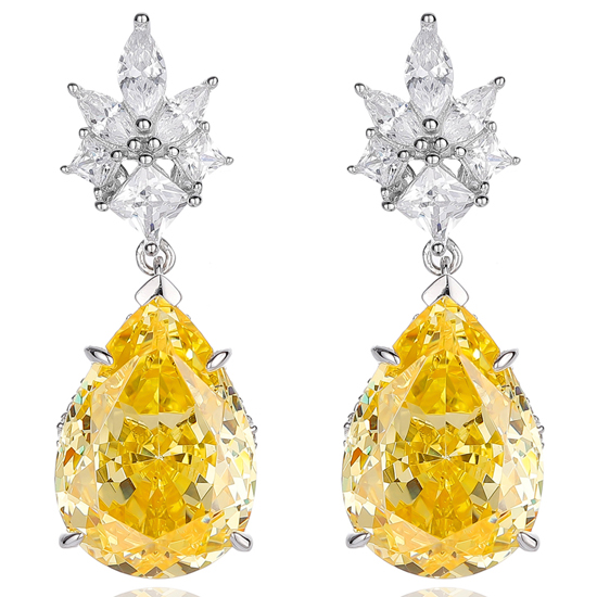 Pear Shape Diamond Yellow And White Cubic Zircon Rhodium Silver Earring