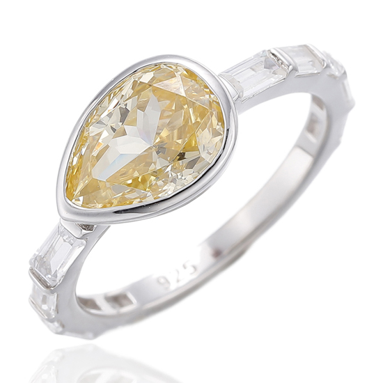 Pear Shape Diamond Yellow And White Cubic Zircon Rhodium Silver Ring