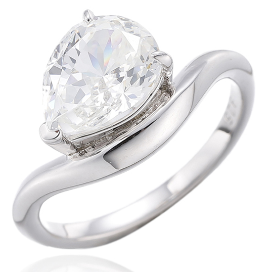 Pear Shape Diamond Yellow Cubic Zircon Rhodium Silver Ring