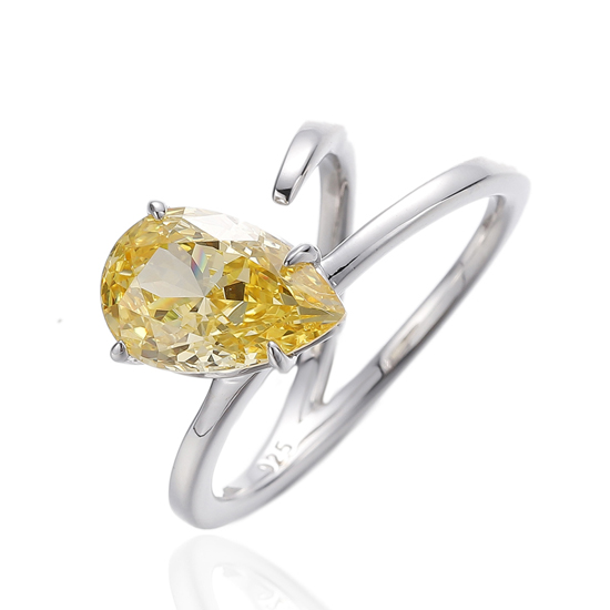 Pear Shape Diamond Yellow Cubic Zircon Rhodium Silver Ring