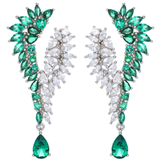 Pear Shape Green Nano And Marquise White Cubic Zircon Rhodium Plating Silver Earring