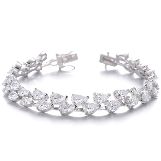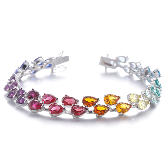 Pear Shape Rainbow Color Cubic Zircon Rhodium Silver Bracelet