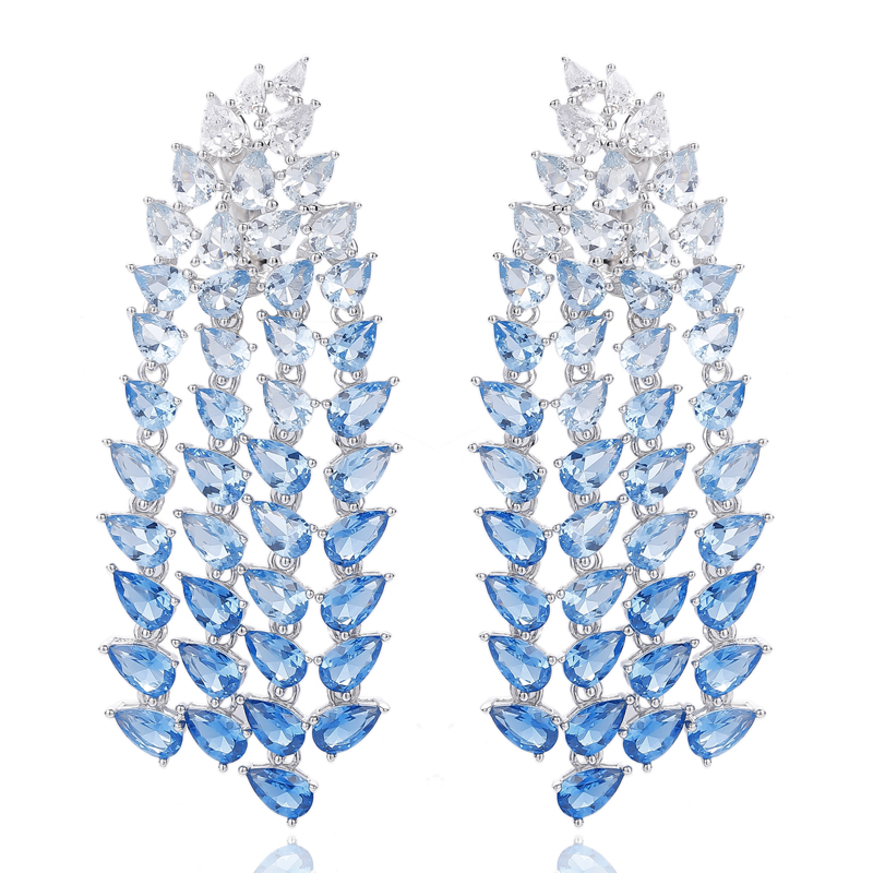 Pear Shape Rainbow Cubic Zircon Rhodium Silver Earring