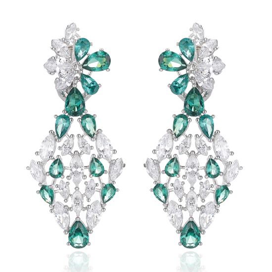 Pear Shape Red Corundum And Marquise White Cubic Zircon Rhodium Silver Earring