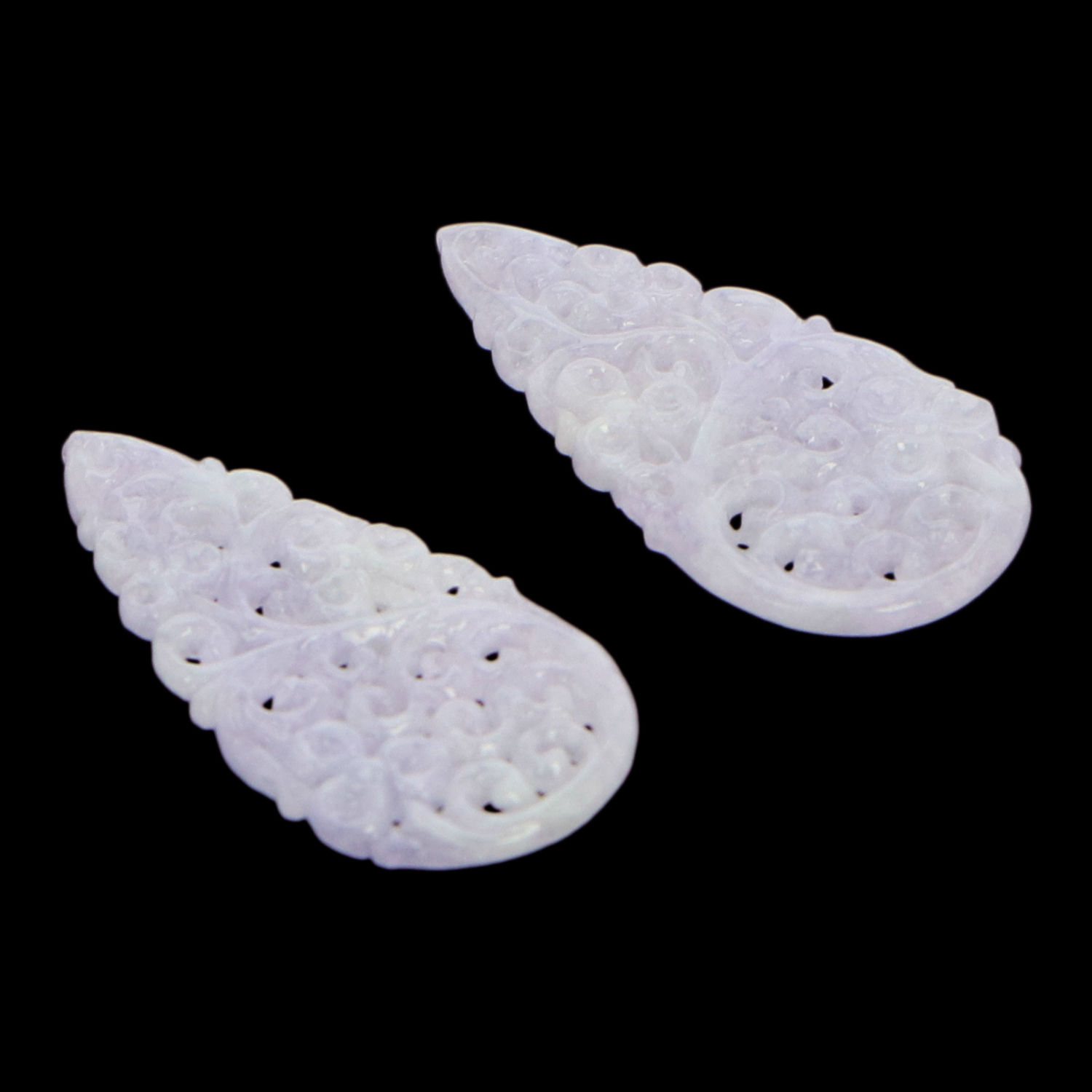- A pair of lavender jadeite jade earrings.