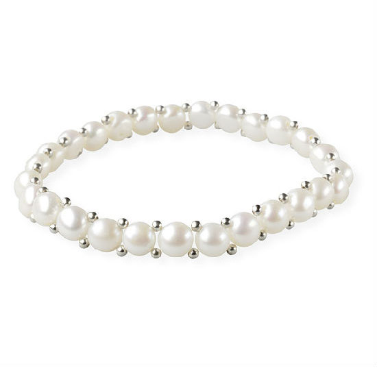 The pearl bracelet comes with innovative design, lustrous look and clarity in excellent refinement. It is exquisitely made of elastic button pearls in white color and 2.4mm silver balls. The stunning style makes it an ideal choice for your beloved.