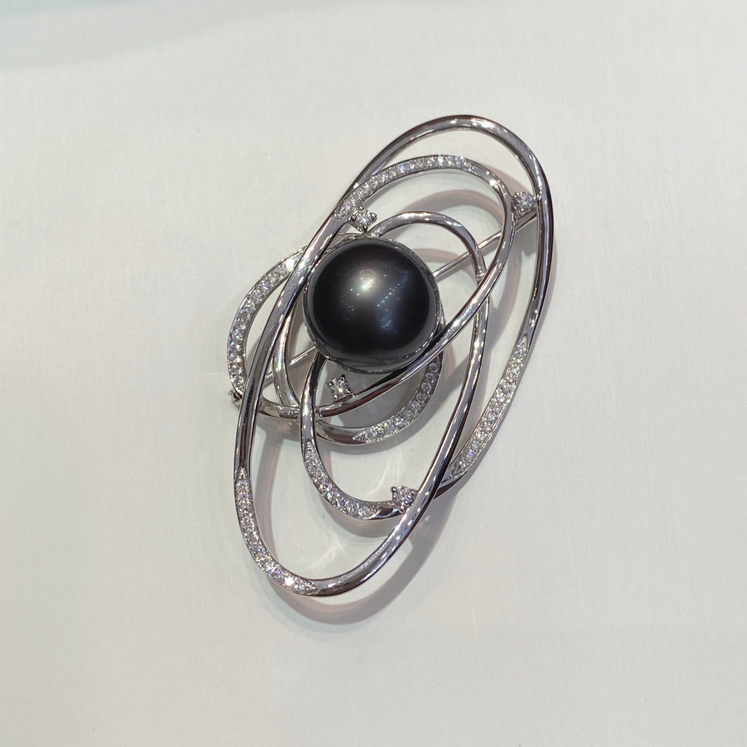 #Tahitian Pearl Brooch #18K White Gold #diamond brooch