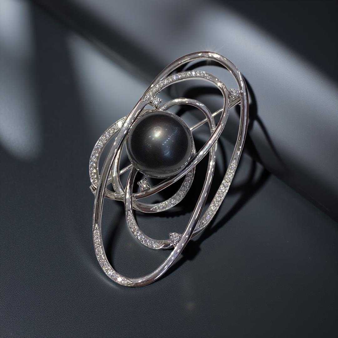 The pearl brooch is a celestial-inspired jewelry piece characterized by its dynamic that mimics the movement of comets through space. This design typically emphasizes a sense of motion and light, often featuring a central focal planet and a trailing path (the "tail").