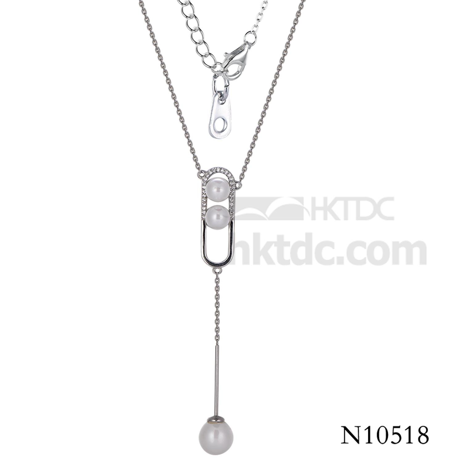 Pearl Clip Trendy Silver Necklace Long Pendant Necklace