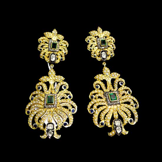 This pair of earrings appeals to ladies with its deluxe and exquisite appearance. Each earring features a sophisticated structure and is decorated with sparkling diamonds, exquisite pearls and green charming stones. The pair of earrings surely is a great addition to your fine jewelry collection.
