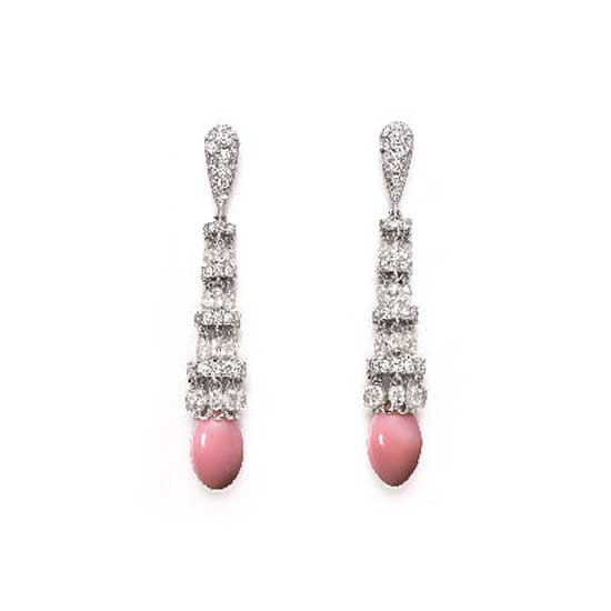 Resembling a treasure from the deep blue ocean, these drop earrings boast to be your new go-to essential. The magnificent pair is masterly rendered with shimmery rows of sparkling diamonds, and underneath them dangled a pair of finely polished conch pearls that look as pink as your smiling cheeks. Just slip them over your ears to spice up your look with no shortage of sparkle.