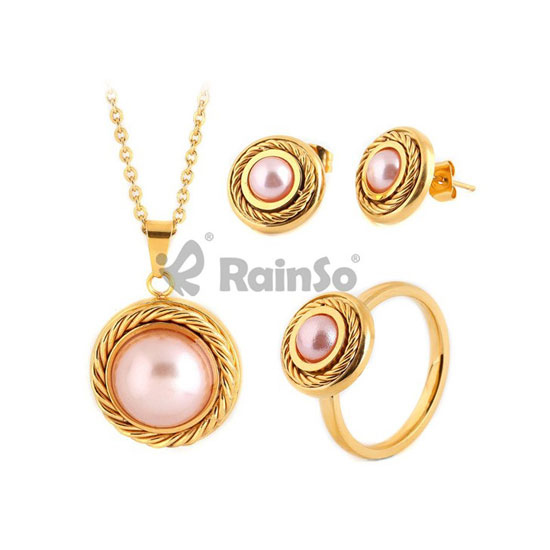 This is a stylish imitation pearl jewelry set with a fashionable design. It comes with a pendant, a ring and a pair of earrings. This jewelry set is finely made with great craftsmanship and delicate details for an attractive look.
