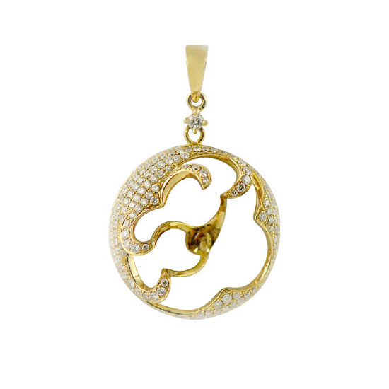 This is a dainty mounting for high-grade jewelry. It features a golden appearance and is paved with shimmering stone elements. This mounting can be inlaid with a pearl for a perfect finish.