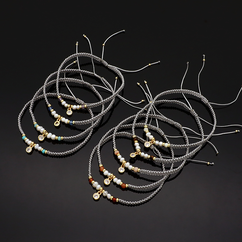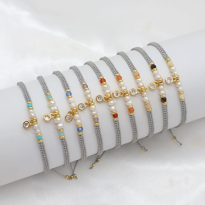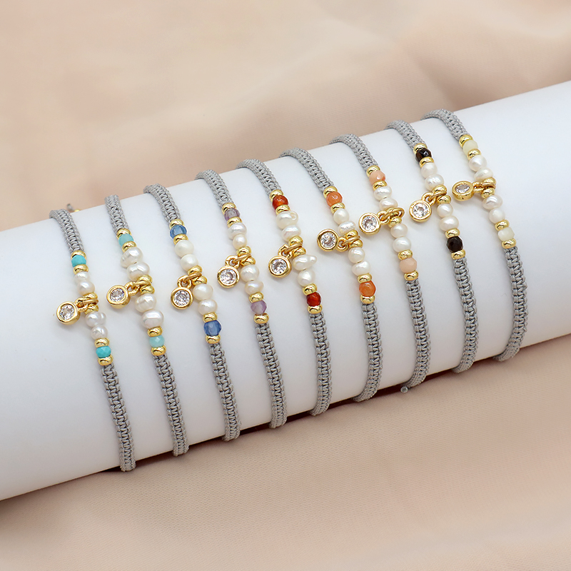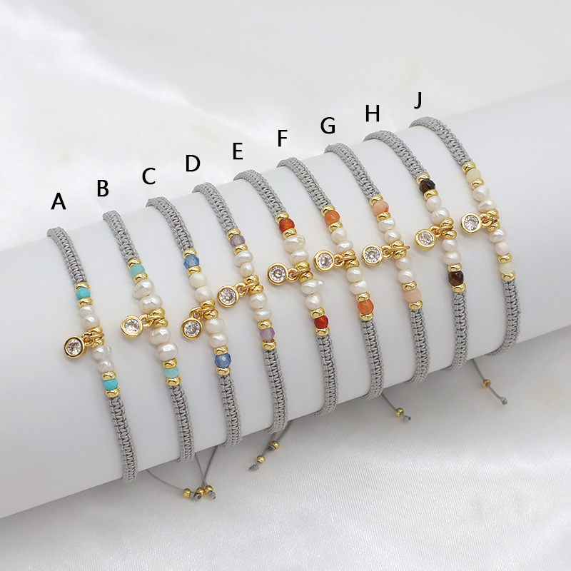 Material : fresh water pearl+ Natural Stone +brass or Silver beads with CZ Charm bracelet