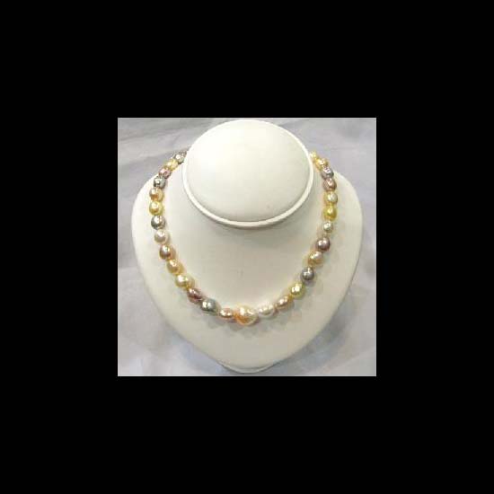 • A necklace is made of multi-colour fresh water pearls