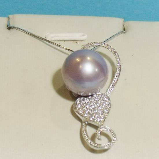 This elegant pearl necklace features a filigree pearl charm and a sparkling crystal accent in a heart shape. The sterling silver necklace offers a plain design that complements the luxurious charm. This classic necklace gives you timeless wear for any formal occasion.