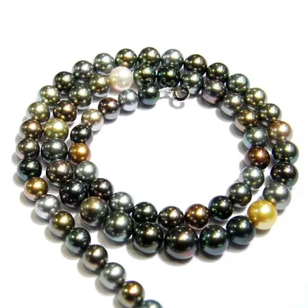 This pearl necklace is made of pearl beads in different colors and sizes for the unique appearance. The top-quality Tahitian pearls are classical and attractive. This pearl necklace is a nice choice for bold and elegant ladies.