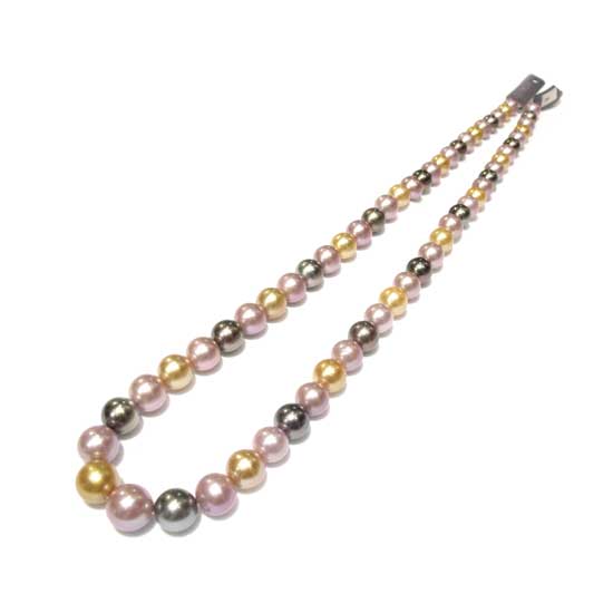 This fascinating necklace is made from South Sea pearls, Tahitian pearls and fresh water pearls in different colors. The top-grade pearls exhibit exceptional luster and brilliance. The diameter of the pearls ranges from 14mm to 16mm.