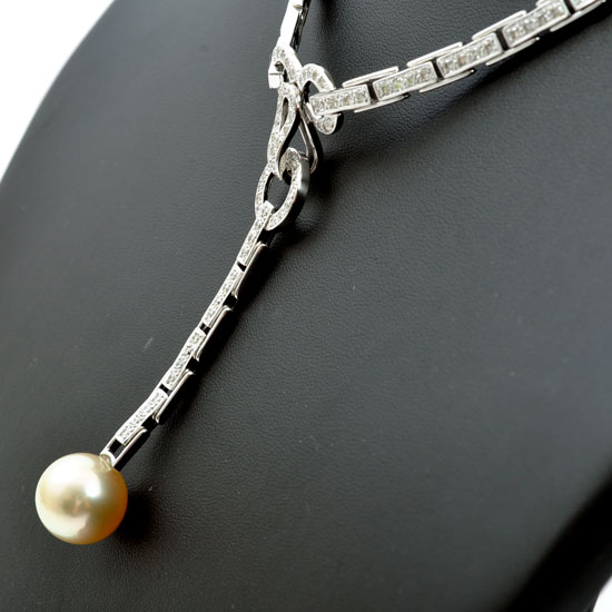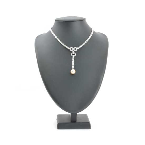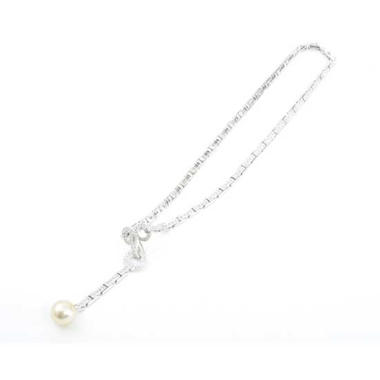 This showcased necklace is finely made with great craftsmanship and delicate details. This fashionable necklace comes with a precious pearl for an elegant touch. This pearl necklace is great for complementing your chic look.