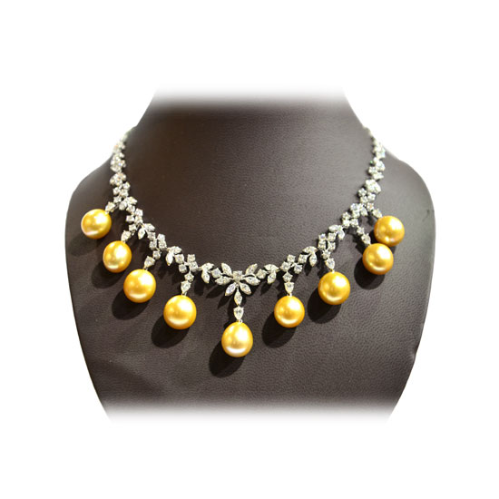 This high-quality necklace comes with a fashionable and luxurious design. It is crafted with dazzling diamonds and golden south sea pearls for an elegant touch. This pearl necklace will surely make you stand out from the crowd.