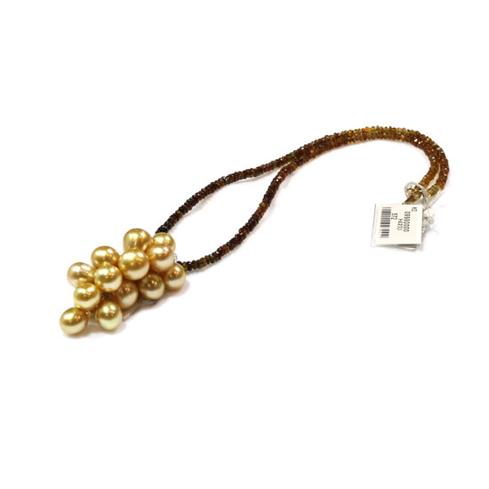 This necklace comes with a stylish and fashionable design. It is crafted with golden south sea pearls for an eye-catching look. The chain is finely made with turquoise stones for a touch of elegance.