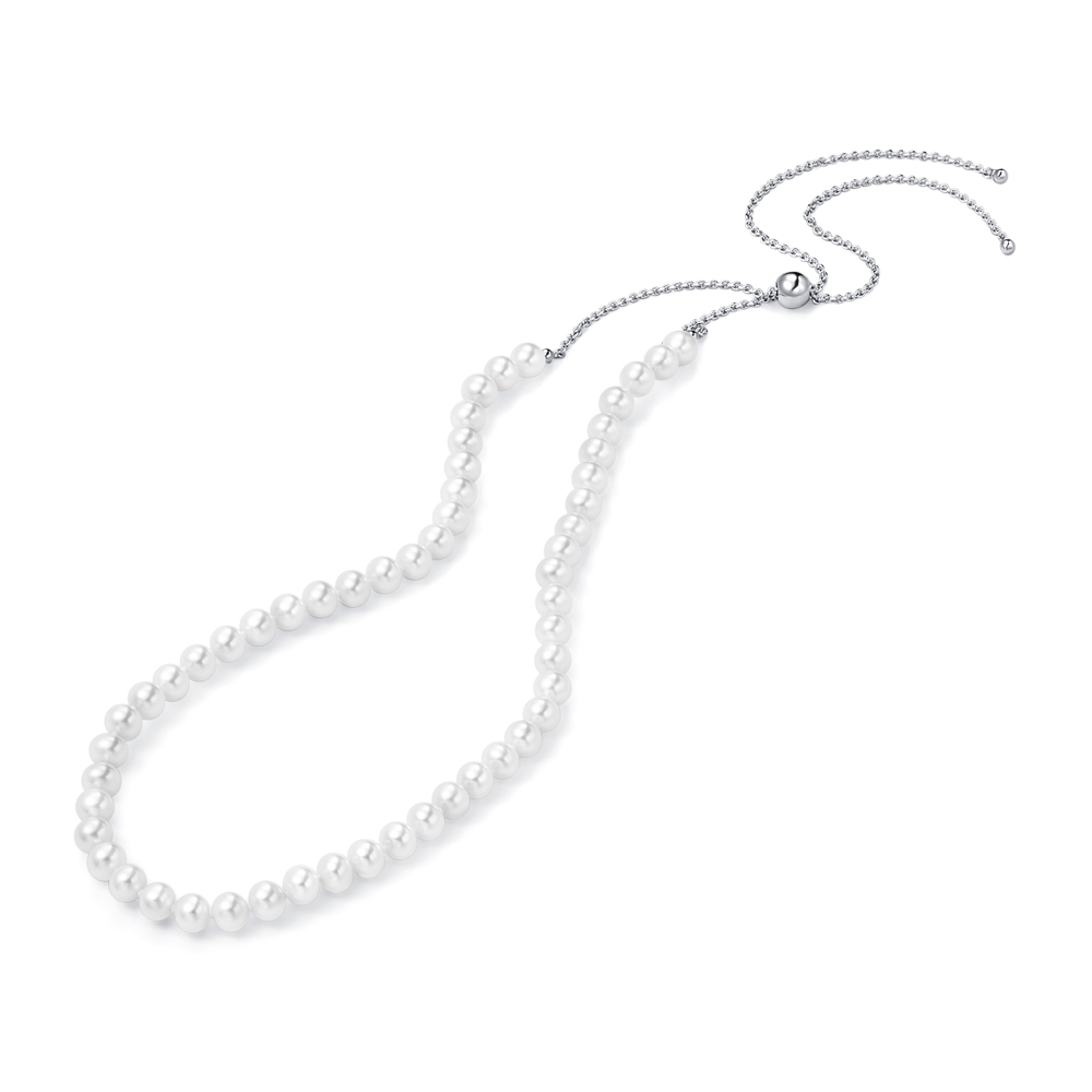 • 6-7mm round potato freshwater pearl necklace with sterling silver bolo clasp