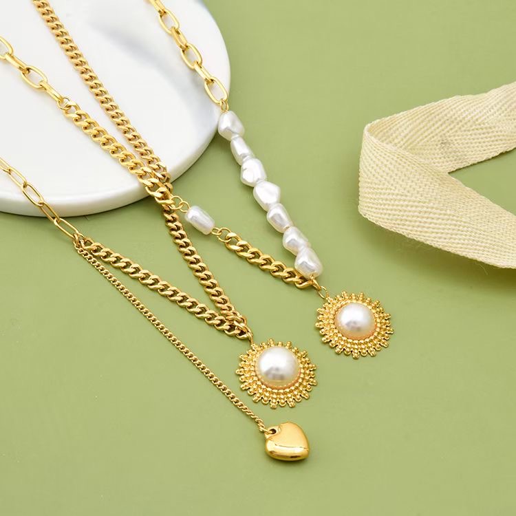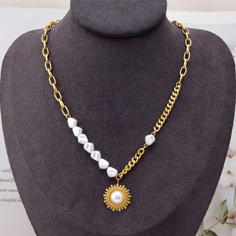Pearl Pendant Necklace in Stainless Steel for Women
