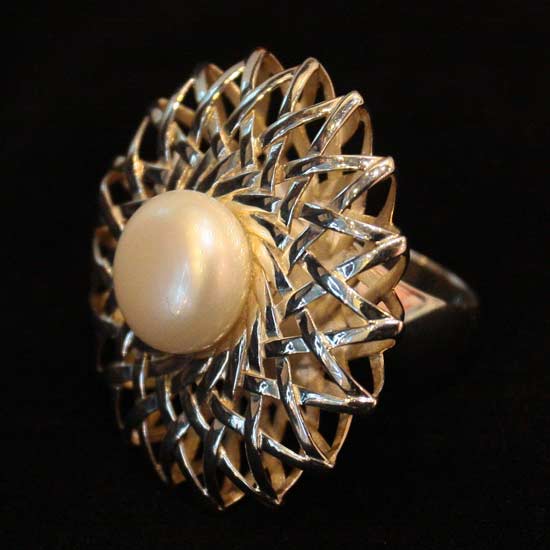 Look beautiful with the featured pearl ring. It features a simple design with a flower pattern and a pearl is located in the center. The petals of the flower are in the shape of crisscrosses.