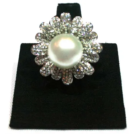 The sparkling ring flaunts a sophisticated setting, featuring a fine piece of shiny South Sea pearl. Perfected by the dazzling round diamonds, the flower-shaped ring emits irresistible shine. The enchanting ring is a heart-capturing gift to your beloved one.