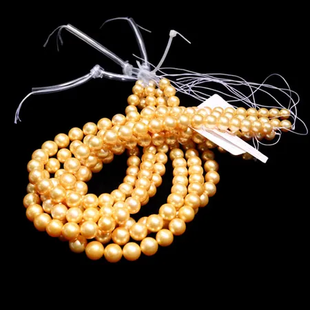 This is a pearl strand with a charming golden hue. It is finely strung with multiple selected pearls and each piece comes in a ball shape. Finish your elegant jewelry design with this pearl strand.