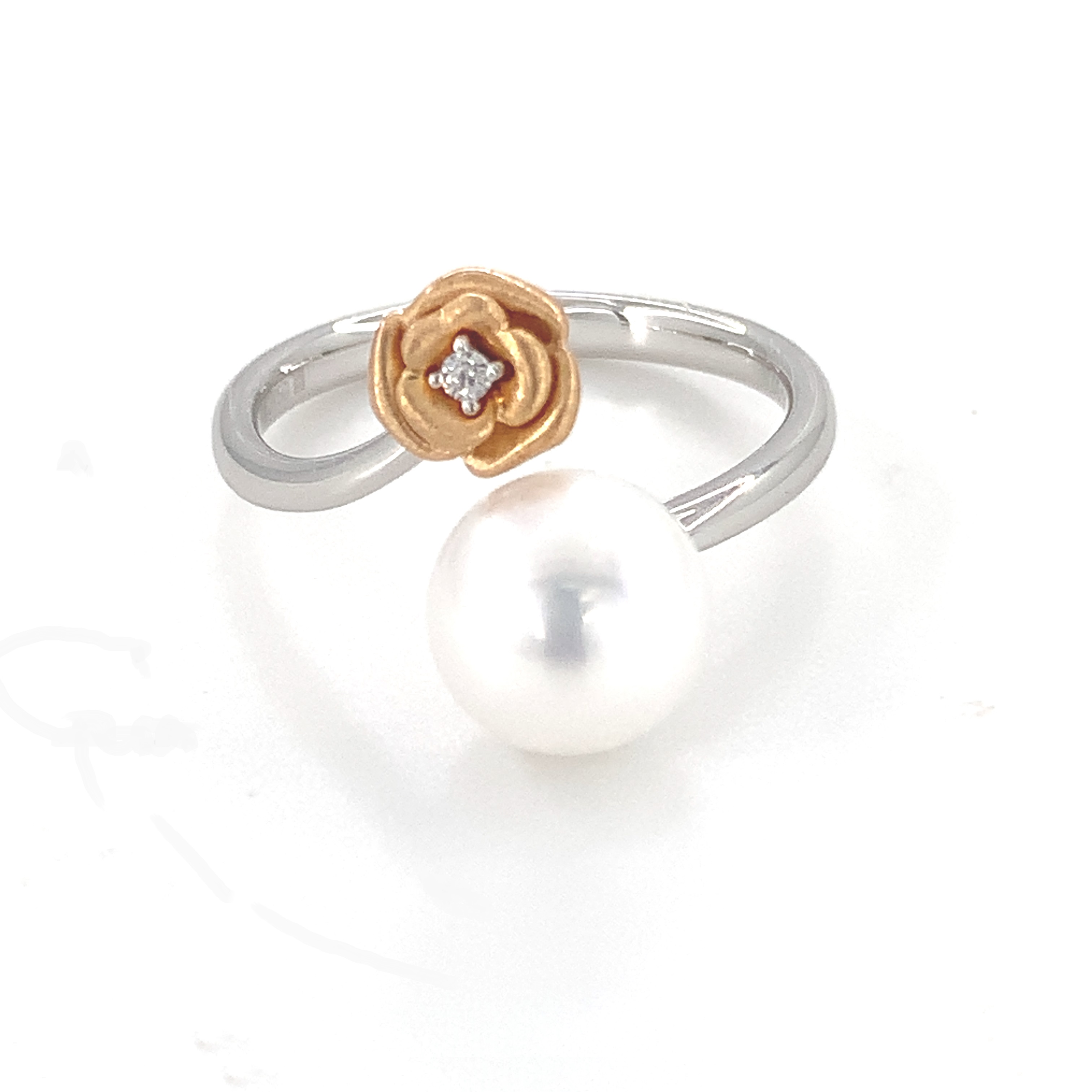 Trendy and cute fresh water pearl ring, with a diamond rose factor, in 18 or 14 or 9 karat gold