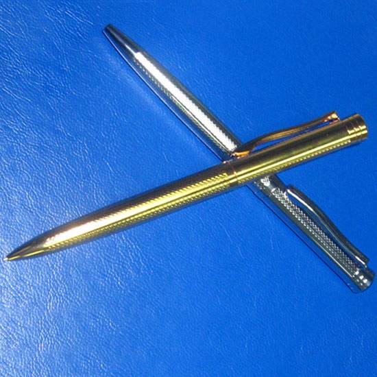Presented is a metal pen. They are either in silver or in gold. They are suitable for executives.