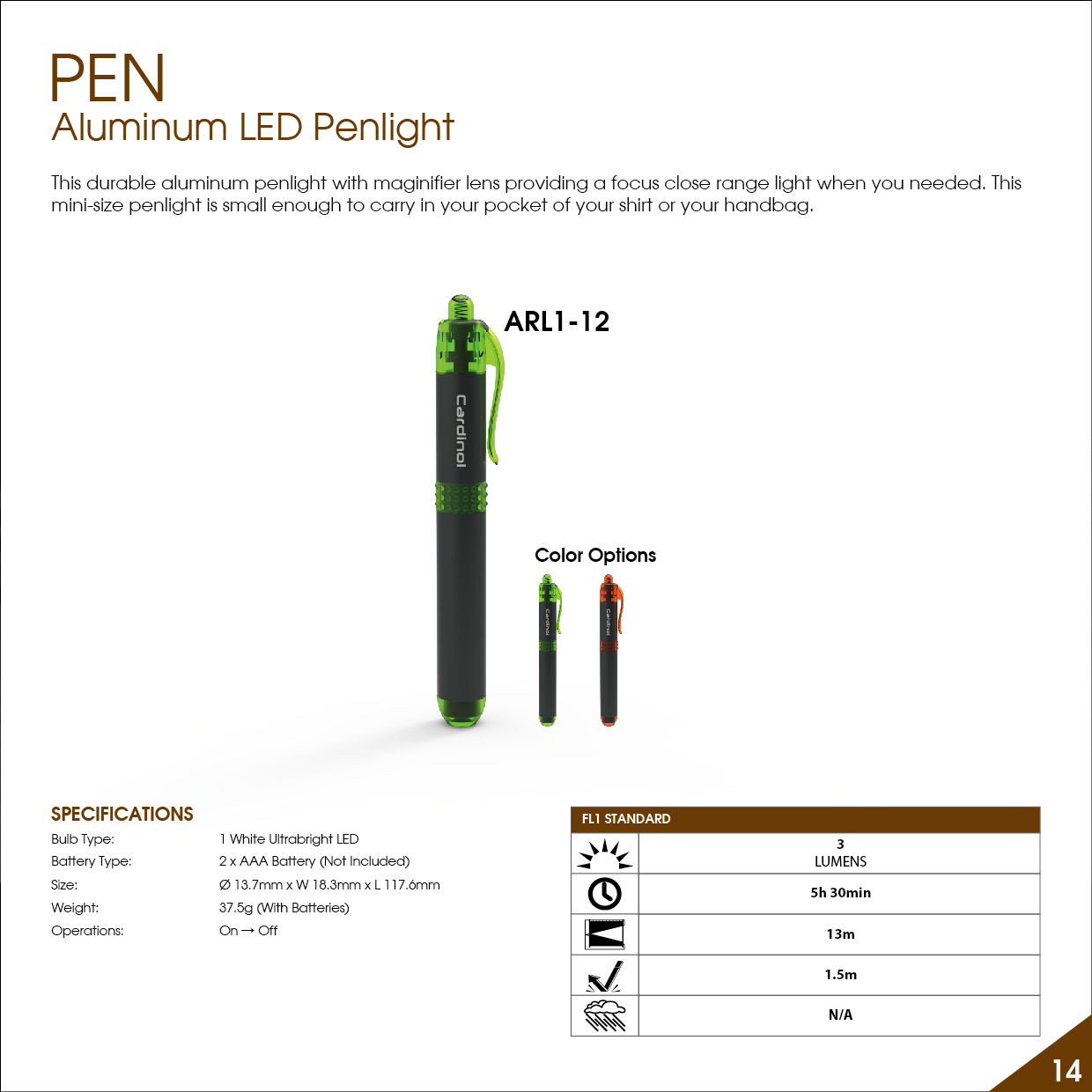 This durable aluminum penlight with maginifier lens providing a focus close range light when you needed. This min-size penlight is small enough to carry in your pocket of your shirt or your handbag.