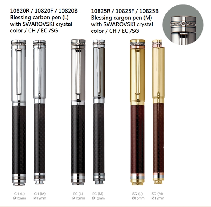 No.10820R/ 10820F/ 10820B: Blessing carbon pen (L): with SWAROVSKI crystal, color / CH / EC / SG