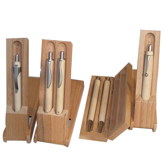 These are wooden pen gift sets with pens and wooden case. They have pocket clips and press action features. The press action Tailor-made and OEM re welcome.