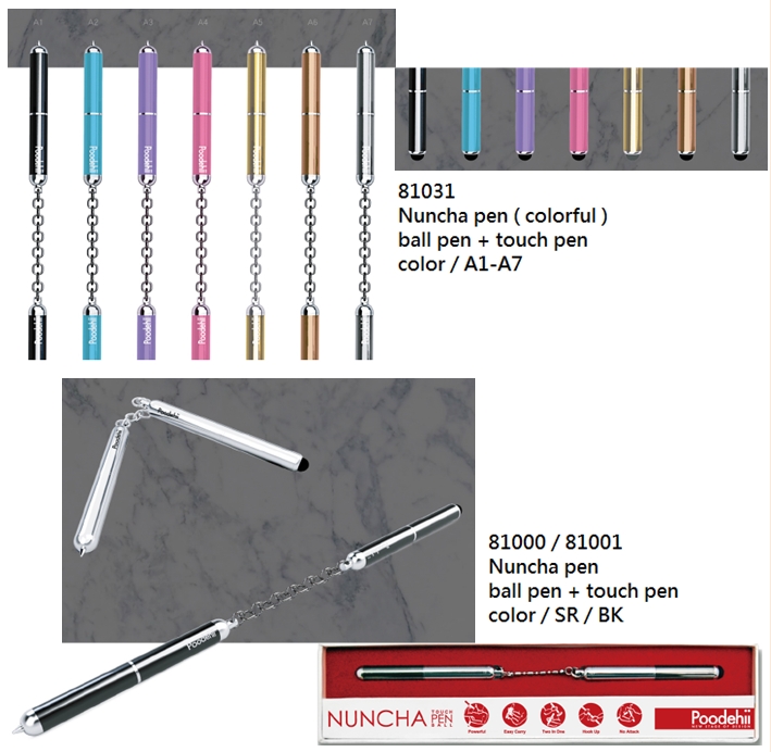 Nuncha Pen81000 / 81001: Nuncha pen _ ball pen + touch pen, color / SR / BK81031: Nuncha pen ( colorful ) _ ball pen + touch pen, color / A1-A7