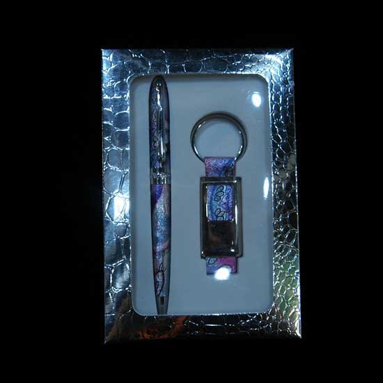 This two-piece pen set includes a ball point pen and a key chain. This pen set is delicately packed in a wonderful gift box. This elegant pen set is a great gift for your beloved friends.
