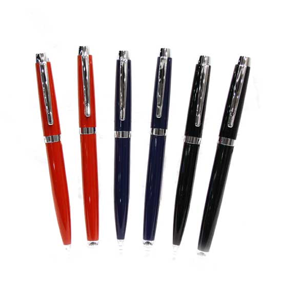 Displayed is a pen set that comes in 6 pieces in 3 colors. Professionally manufactured, these pens write smoothly and last long. This high quality pen set is a great choice for desktop stationery.