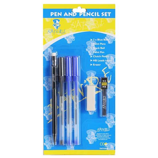 This pen and pencil set comes with 2 blue ball pens, 1 black ball pen, 1 pencil, 1 rubber and so on. The top-quality plastic housing is durable and offers added endurance. This pen and pencil set is an excellent addition to your work desk.