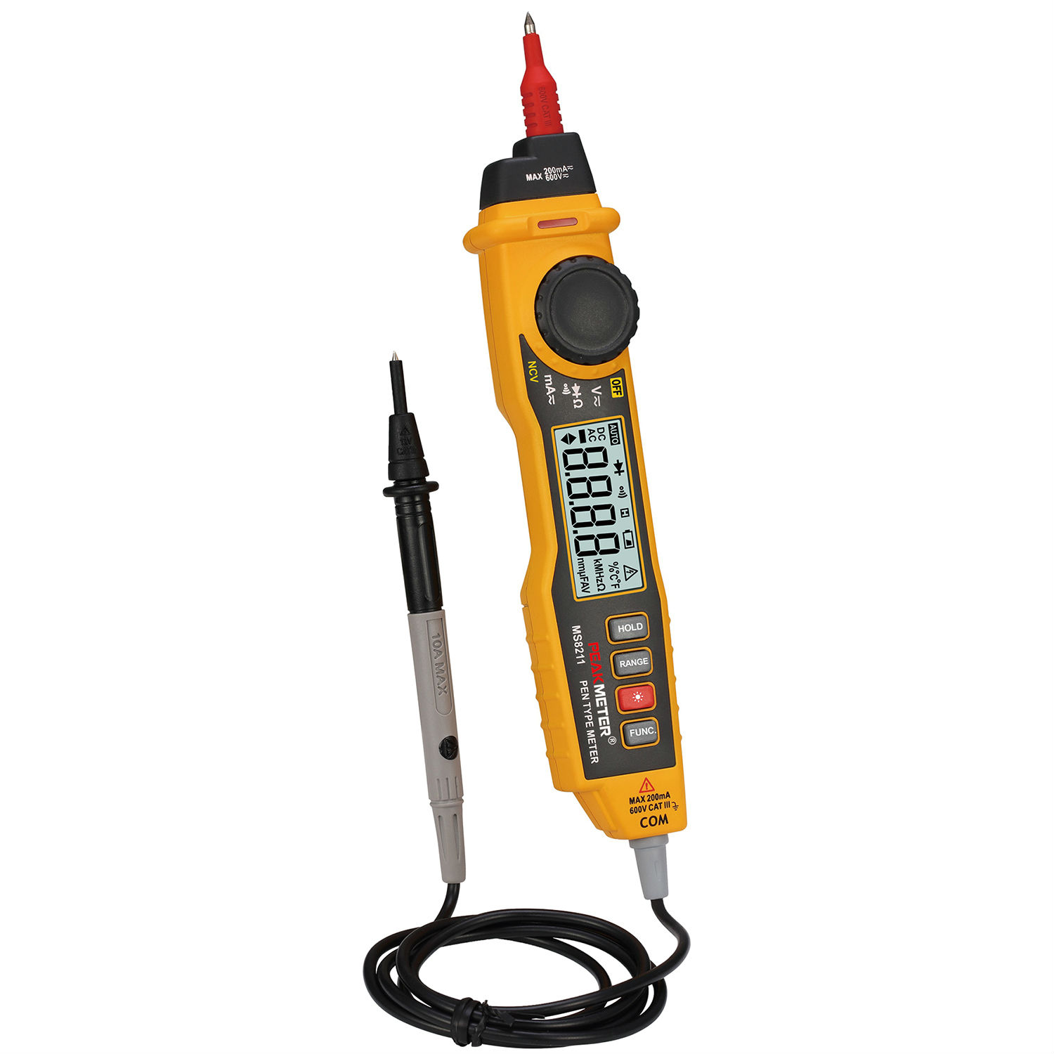 3 1/2 digits LCD, max. reading 1999 Non-contact AC voltage detection with adjustable sensitivity & sound/flash alarming Data hold, maximum value hold Auto /manual range, auto-power off Safety as per IEC1010-1, Cat.III 600V Technical specifications DCV: 200m/2/20/200/600V, ±0.7% ACV: 200m/2/20/200/600V, ±0.8% DCA: 20m/200mA, ±1.5% ACA: 20m/200mA, ±2.0% OHM: 200/2k/20k/200k/2M/20MΩ, ±1.0% Audible continuity & diode test Battery: 1.5Vx2, AAA Dimensions: 38x205x29mm Weight: 110g approx. (Incl. battery)