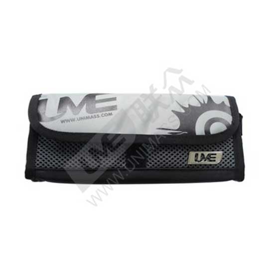 This is a stylish pencil bag designed in gray and black colors. Prints are added on the cover to highlight a cool design. The mesh pockets allow students to keep their stationery in a good order.