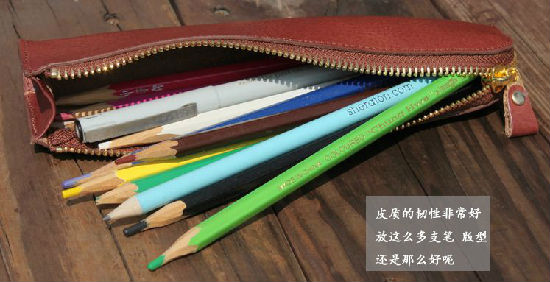 The pencil bag in the picture shows that stationery does not have to look boring. Made of leather, it features a classy brown exterior with a zippered closure for the compartment. To suit the preferences of different users, the leather can come in cow hide, soft cow nappa leather, split leather, sheep leather, and goat leather. The pencil bag can also be garnished with an embossed logo.