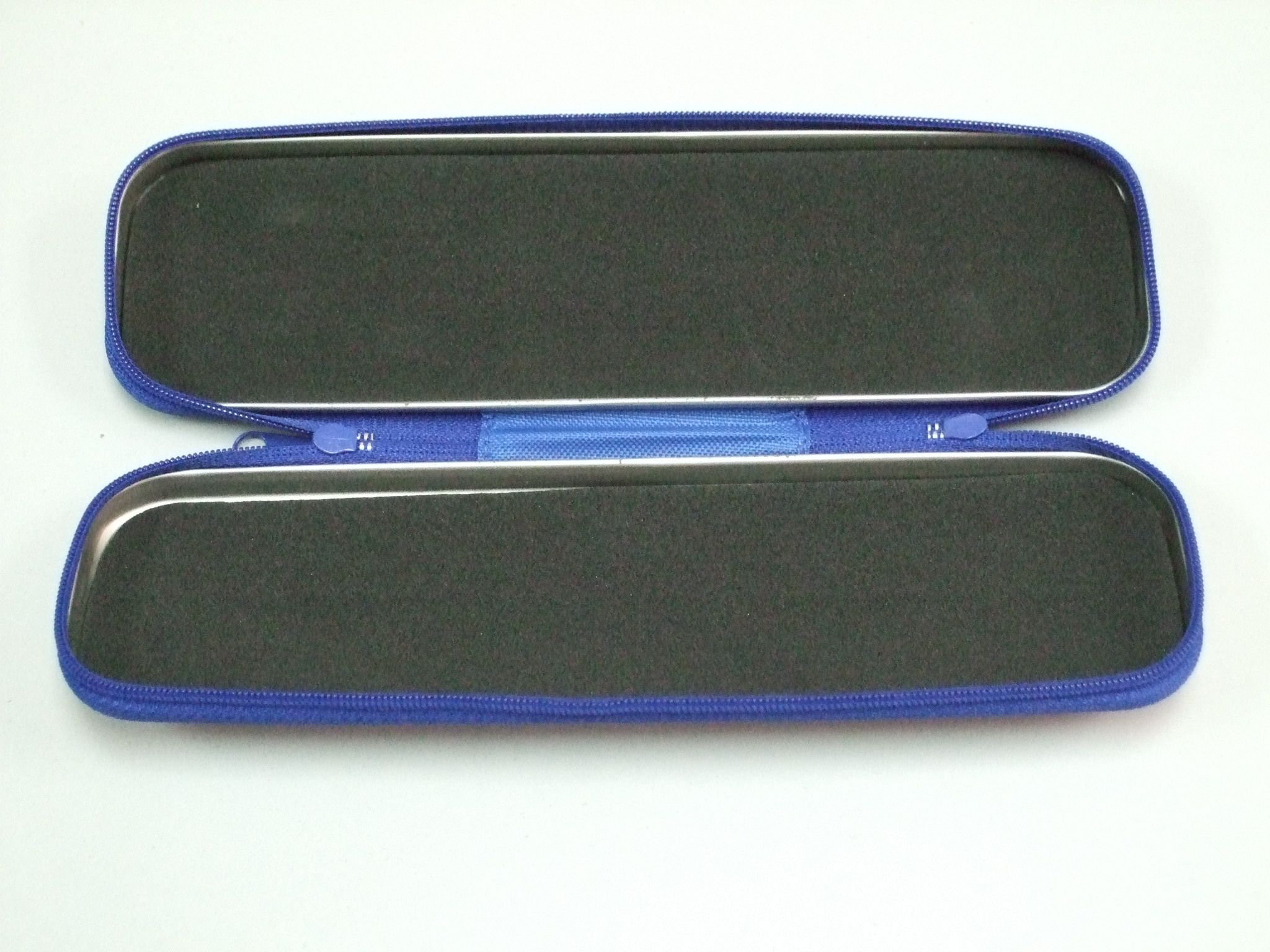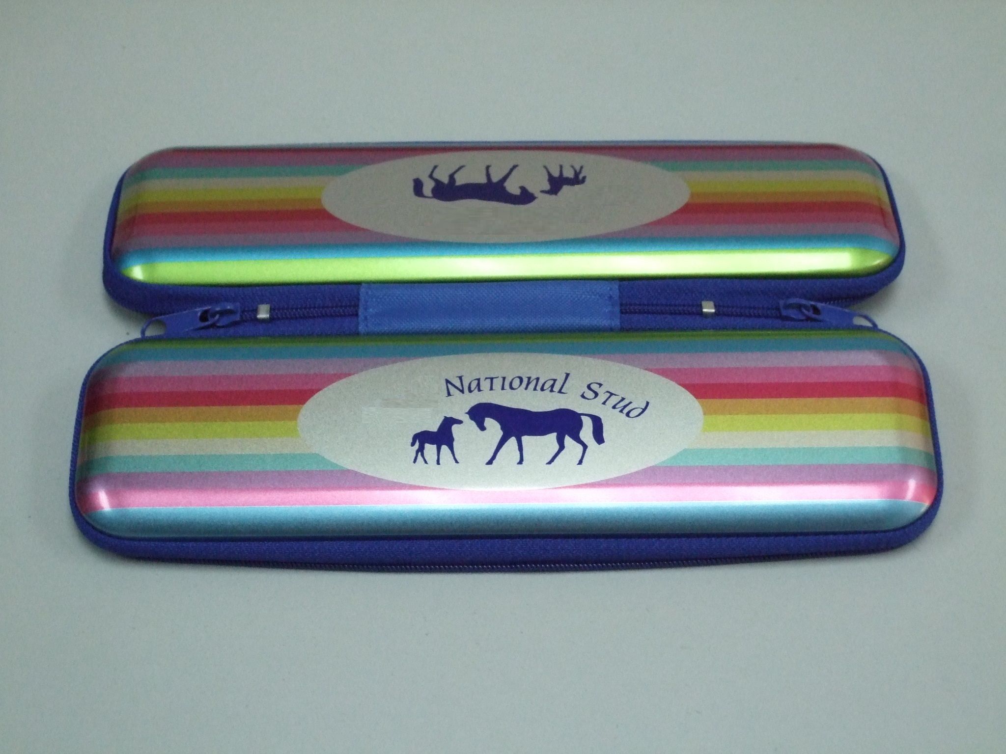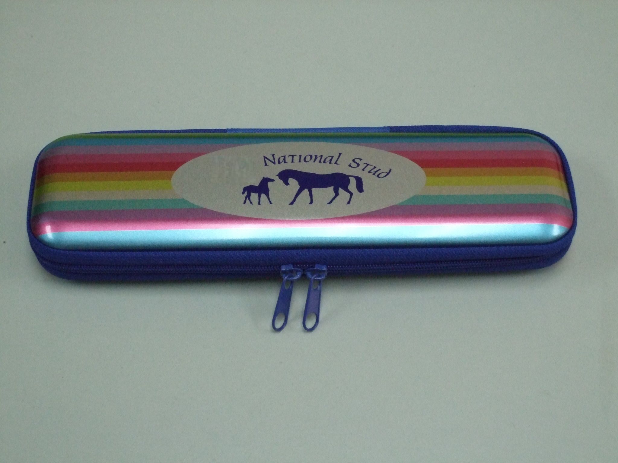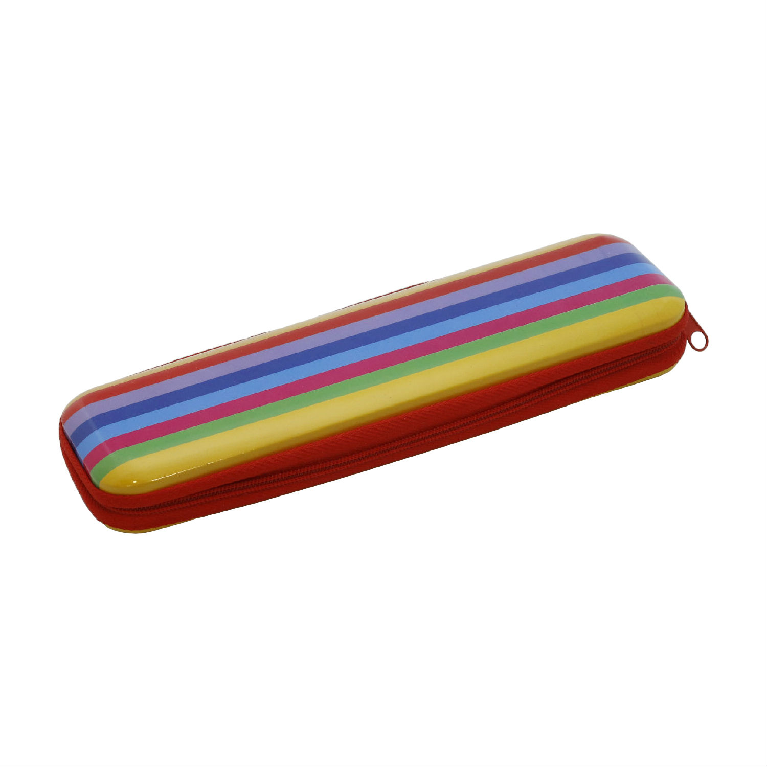 Store your stationery essentials in style with this metal pencil case. Making statement through its colorful striped exterior, the elongated tailor pairs a two-way zipper of popping red to draw attention. It keeps your writing tools organized and handy for on the go use.