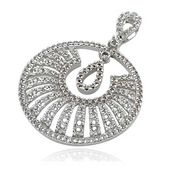 This spectacular pendant comes in a hollow circular shape, featuring a water drop pattern with lines underneath extending like the sun rays. This gorgeous pendant is embedded with glimmering precious stones along the edges as well as the carved figure, shining with utmost radiance in all rotations.