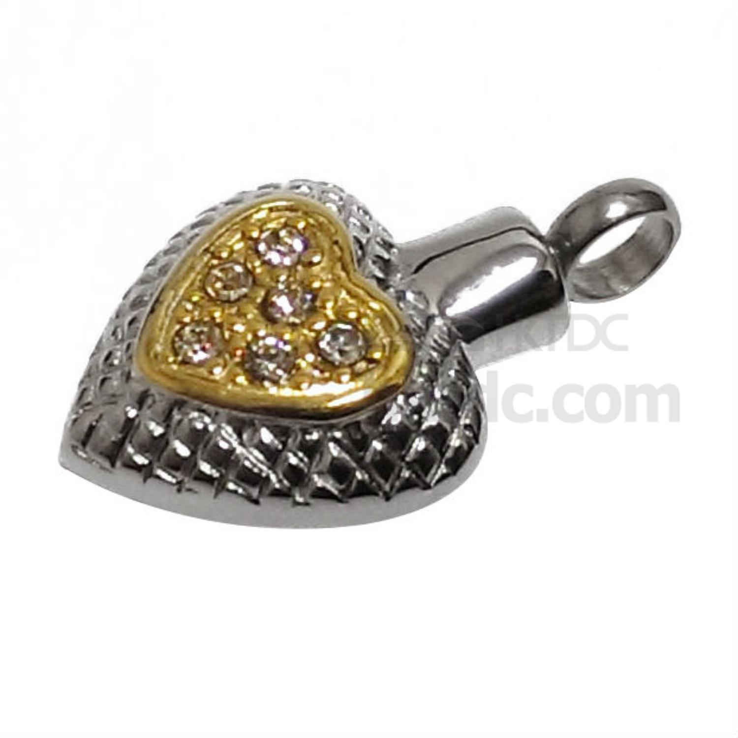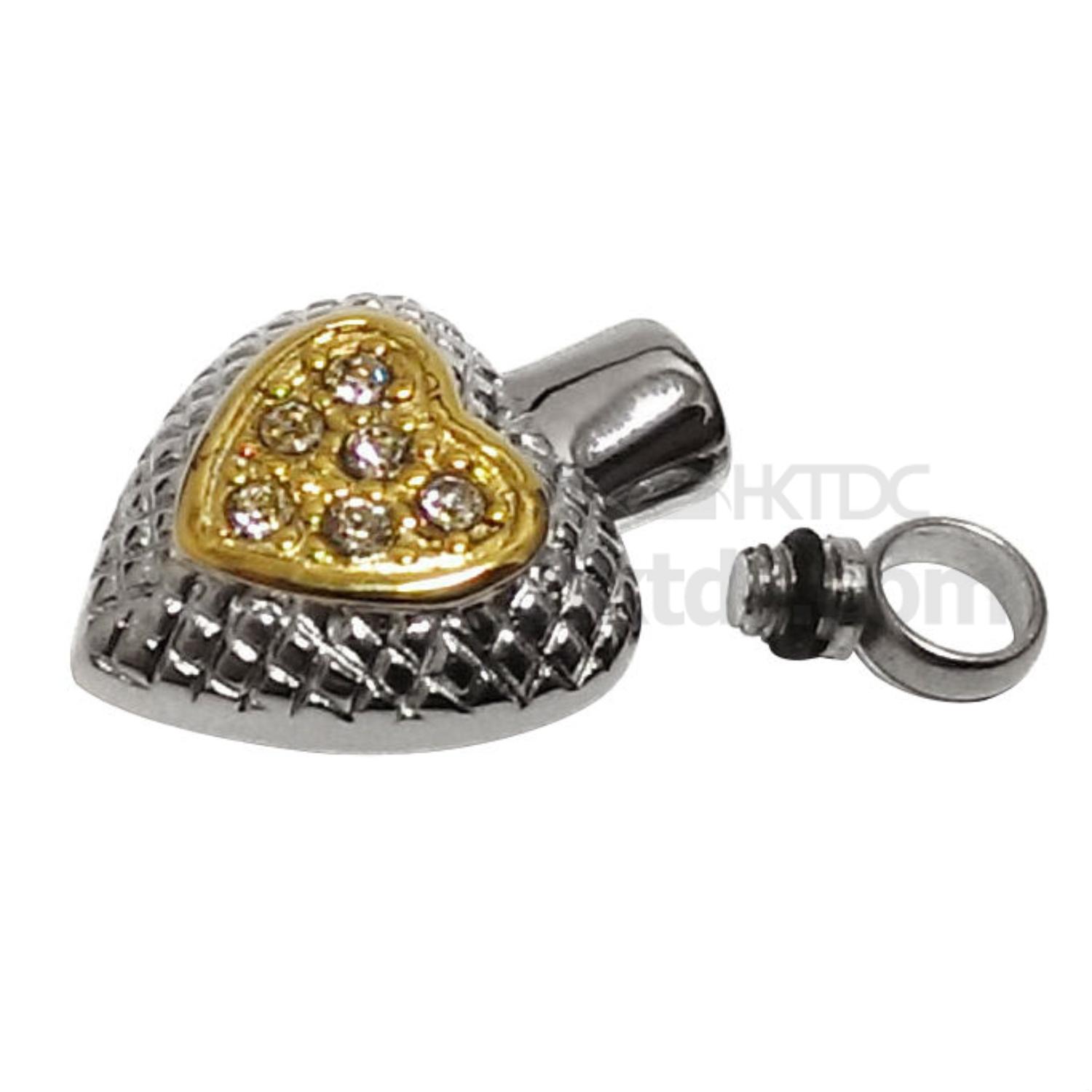 Bordered with quilted patterns, this heart shape pendant boasts a double-tone complete and an admirable polished appeal. Apart from the six centered gemstones, it is topped by a hanging loop for versatile mix and match with different necklaces.