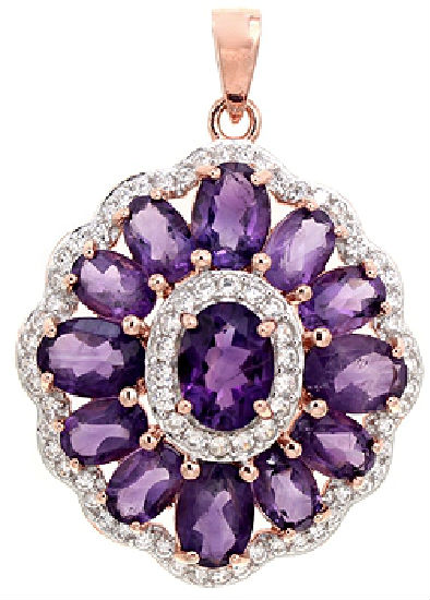 Showcased here is a floral-inspired pendant in exquisite craftsmanship. The design presents extraordinary African Amethyst in oval shapes, which are assembled together as petals and stamen. A stone-paved frame is made to enclose the whole flower to add a bit of glitz and glamor to the piece. Thread a cable chain through the bail atop to finish your look.