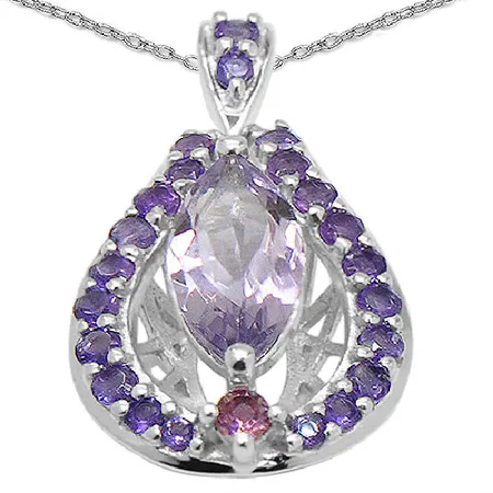• Rhodium plated 925 silver pendant with pink amethyst, pink tourmaline & amethyst
